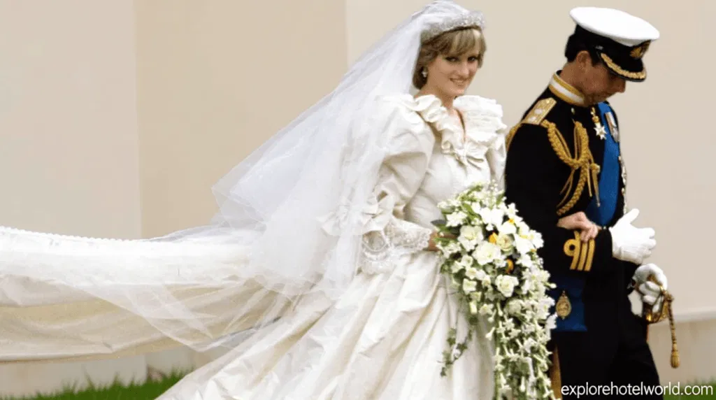 In 1981, Lady Diana Spencer’s wedding at St Paul’s Cathedral became a global spectacle, with her ivory silk taffeta and lace gown—crafted by David Emanuel and his wife Elizabeth—capturing the attention of millions watching on television. The ensemble, featuring a 25-foot train, remains an iconic symbol of royal nuptials.