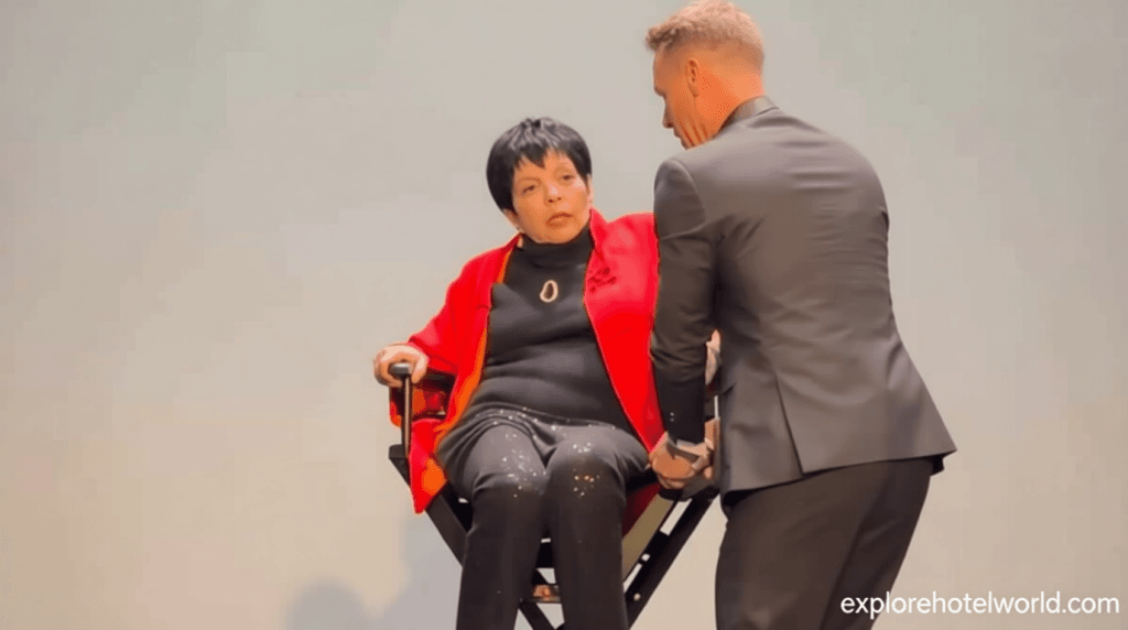 Throughout the evening, Minnelli’s performance was punctuated by moments of disorientation, as she trailed off mid-sentence and emitted sudden, uncontrolled laughter during discussions of her stage and film history. Fans noted her struggle to maintain focus, with some whispering about her health after she was carried offstage in a director’s chair, appearing visibly perplexed.